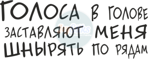 Виниловая наклейка «Голоса в голове 1» изготовлена из высококачественного материала желаемого цвета, вырезанная по контуру. Минимальный размер наклейки: 10x4 см. Наклейку можно сделать любым представленным цветом. Клеющий слой из полиакрилового клея. Легко удаляется с поверхности. Любая печатная наклейка в каталоге может быть исполнена в контурном варианте без фона, и наоборот, любую контурную наклейку можно изготовить полноцветной.