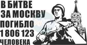 Виниловая наклейка «Битва за Москву» изготовлена из высококачественного материала желаемого цвета, вырезанная по контуру. Минимальный размер наклейки: 25x12 см. Наклейку можно сделать любым представленным цветом. Клеющий слой из полиакрилового клея. Легко удаляется с поверхности. Любая печатная наклейка в каталоге может быть исполнена в контурном варианте без фона, и наоборот, любую контурную наклейку можно изготовить полноцветной.