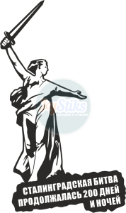 Виниловая наклейка «Сталинградская битва» изготовлена из высококачественного материала желаемого цвета, вырезанная по контуру. Минимальный размер наклейки: 12x20 см. Наклейку можно сделать любым представленным цветом. Клеющий слой из полиакрилового клея. Легко удаляется с поверхности. Любая печатная наклейка в каталоге может быть исполнена в контурном варианте без фона, и наоборот, любую контурную наклейку можно изготовить полноцветной.