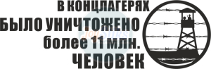 Виниловая наклейка «В концлагерях» изготовлена из высококачественного материала желаемого цвета, вырезанная по контуру. Минимальный размер наклейки: 25x8 см. Наклейку можно сделать любым представленным цветом. Клеющий слой из полиакрилового клея. Легко удаляется с поверхности. Любая печатная наклейка в каталоге может быть исполнена в контурном варианте без фона, и наоборот, любую контурную наклейку можно изготовить полноцветной.