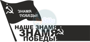 Виниловая наклейка «Знамя победы» изготовлена из высококачественного материала желаемого цвета, вырезанная по контуру. Минимальный размер наклейки: 19x9 см. Наклейку можно сделать любым представленным цветом. Клеющий слой из полиакрилового клея. Легко удаляется с поверхности. Любая печатная наклейка в каталоге может быть исполнена в контурном варианте без фона, и наоборот, любую контурную наклейку можно изготовить полноцветной.