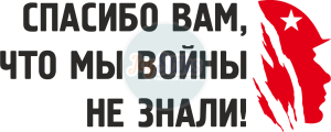 Виниловая наклейка «Спасибо Вам, что мы войны не знали» изготовлена из высококачественного материала желаемого цвета, вырезанная по контуру. Минимальный размер наклейки: 15x6 см. Наклейку можно сделать любым представленным цветом. Клеющий слой из полиакрилового клея. Легко удаляется с поверхности. Любая печатная наклейка в каталоге может быть исполнена в контурном варианте без фона, и наоборот, любую контурную наклейку можно изготовить полноцветной.