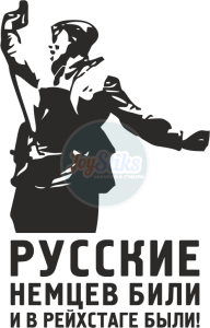 Виниловая наклейка «Русские немцев били» изготовлена из высококачественного материала желаемого цвета, вырезанная по контуру. Минимальный размер наклейки: 8x11 см. Наклейку можно сделать любым представленным цветом. Клеющий слой из полиакрилового клея. Легко удаляется с поверхности. Любая печатная наклейка в каталоге может быть исполнена в контурном варианте без фона, и наоборот, любую контурную наклейку можно изготовить полноцветной.