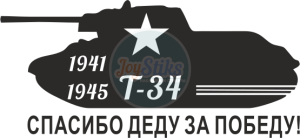 Виниловая наклейка «Танк Т-34. Спасибо за Победу» изготовлена из высококачественного материала желаемого цвета, вырезанная по контуру. Минимальный размер наклейки: 15x6 см. Наклейку можно сделать любым представленным цветом. Клеющий слой из полиакрилового клея. Легко удаляется с поверхности. Любая печатная наклейка в каталоге может быть исполнена в контурном варианте без фона, и наоборот, любую контурную наклейку можно изготовить полноцветной.