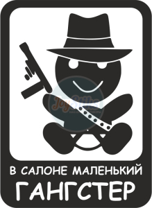 Виниловая наклейка «В салоне маленький гангстер» изготовлена из высококачественного материала желаемого цвета, вырезанная по контуру. Минимальный размер наклейки: 7x8 см. Наклейку можно сделать любым представленным цветом. Клеющий слой из полиакрилового клея. Легко удаляется с поверхности. Любая печатная наклейка в каталоге может быть исполнена в контурном варианте без фона, и наоборот, любую контурную наклейку можно изготовить полноцветной.