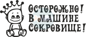 Виниловая наклейка «Осторожно В машине сокровище» изготовлена из высококачественного материала желаемого цвета, вырезанная по контуру. Минимальный размер наклейки: 14x6 см. Наклейку можно сделать любым представленным цветом. Клеющий слой из полиакрилового клея. Легко удаляется с поверхности. Любая печатная наклейка в каталоге может быть исполнена в контурном варианте без фона, и наоборот, любую контурную наклейку можно изготовить полноцветной.