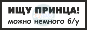 Виниловая наклейка «Ищу принца» изготовлена из высококачественного материала желаемого цвета, вырезанная по контуру. Минимальный размер наклейки: 15x5 см. Наклейку можно сделать любым представленным цветом. Клеющий слой из полиакрилового клея. Легко удаляется с поверхности. Любая печатная наклейка в каталоге может быть исполнена в контурном варианте без фона, и наоборот, любую контурную наклейку можно изготовить полноцветной.