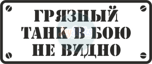 Виниловая наклейка «Грязный танк в бою не видно» изготовлена из высококачественного материала желаемого цвета, вырезанная по контуру. Минимальный размер наклейки: 10x4 см. Наклейку можно сделать любым представленным цветом. Клеющий слой из полиакрилового клея. Легко удаляется с поверхности. Любая печатная наклейка в каталоге может быть исполнена в контурном варианте без фона, и наоборот, любую контурную наклейку можно изготовить полноцветной.