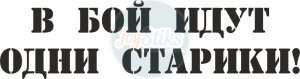 Виниловая наклейка «В бой идут одни старики» изготовлена из высококачественного материала желаемого цвета, вырезанная по контуру. Минимальный размер наклейки: 20x5 см. Наклейку можно сделать любым представленным цветом. Клеющий слой из полиакрилового клея. Легко удаляется с поверхности. Любая печатная наклейка в каталоге может быть исполнена в контурном варианте без фона, и наоборот, любую контурную наклейку можно изготовить полноцветной.