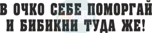 Виниловая наклейка «В очко бибикни» изготовлена из высококачественного материала желаемого цвета, вырезанная по контуру. Минимальный размер наклейки: 10x2 см. Наклейку можно сделать любым представленным цветом. Клеющий слой из полиакрилового клея. Легко удаляется с поверхности. Любая печатная наклейка в каталоге может быть исполнена в контурном варианте без фона, и наоборот, любую контурную наклейку можно изготовить полноцветной.